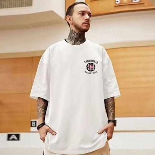남자 스트릿 스타일 빅사이즈 라운드넥 반팔 티셔츠 WEC80C0