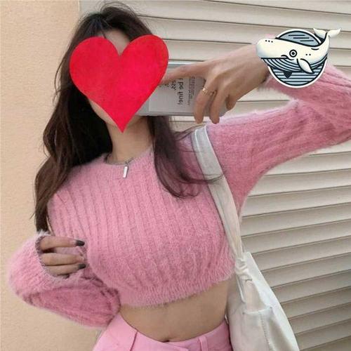 [에이치플러스몰]슈가런니트 앙고라 긴팔 크롭 숏 가을 걸리시 무지 라