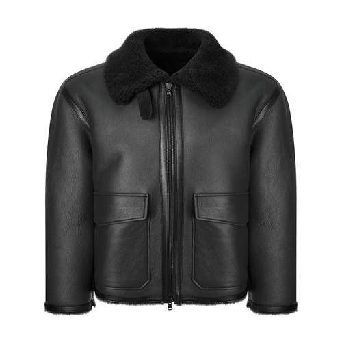 바쏘옴므 남성 블랙 양가죽 배색 페이크레더 무스탕 퍼 WSZ4UA47ABK