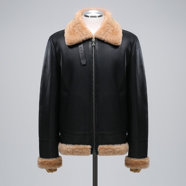 남성 천연 양모 양가죽 B3 모피 라이더 자켓 무스탕 블랙