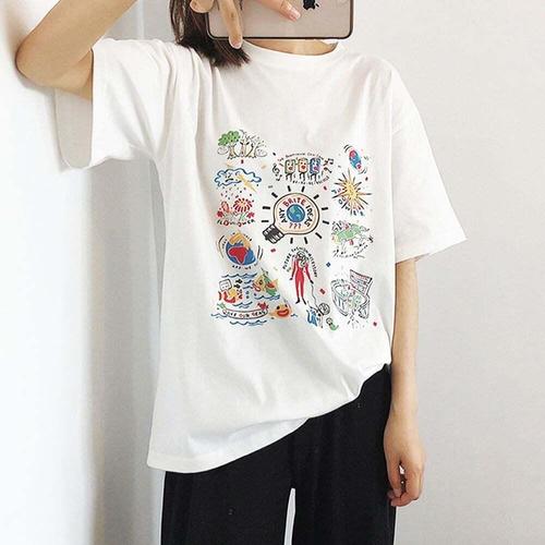 [셀럽하우스]셔츠 XEAD5824 티 캐주얼 여름 라운드 반팔 루즈핏