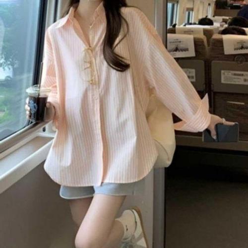 [에이치플러스몰]루즈핏 인기 편한 스트라이프 셔츠 감성 봄여름 긴팔