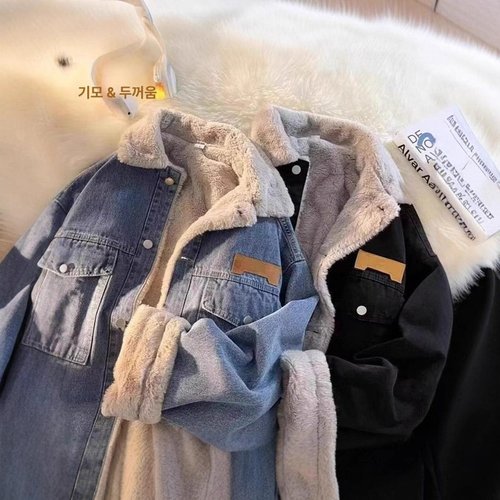 ANYOU 남성용 겨울 기모 데님 자켓 빅사이즈 루즈핏 방한 보온 아우터