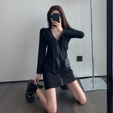 [유니제이] 쿠틴 단가라 배색 후드 원피스