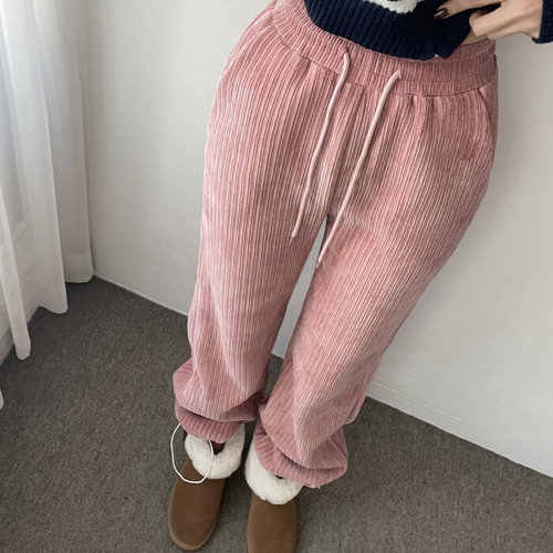 글램핏 / 벨벳 코듀로이 밴딩 도톰 융털 기모 와이드 조거 팬츠