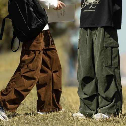 JEEP SPIRIT 남성 루즈 스트레이트 카고바지 가봄 가을 야외용 다중 포켓 조거팬츠
