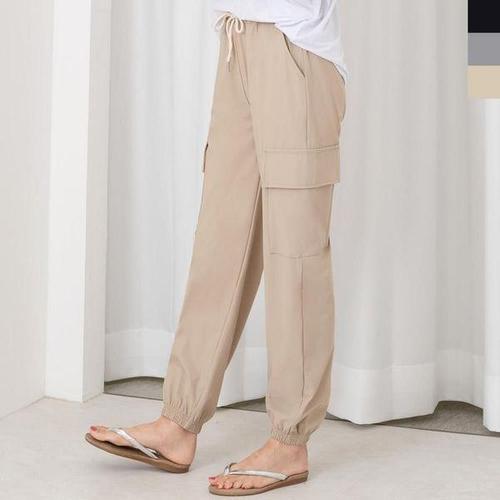 [에이치플러스몰]세미 일자 스판 허리밴딩 코디 면 배기팬츠 긴바지