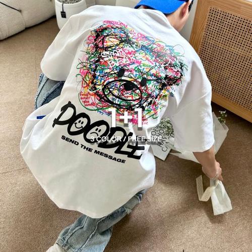 [노멀쉐이크][원플러스원] 더블곰 프린팅 반팔티셔츠 여름 쿨티셔츠 3컬러