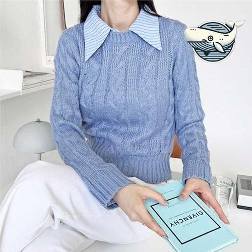 [에이치플러스몰]세미크롭 편안한 레이어드 니트 셔츠 꾸안꾸