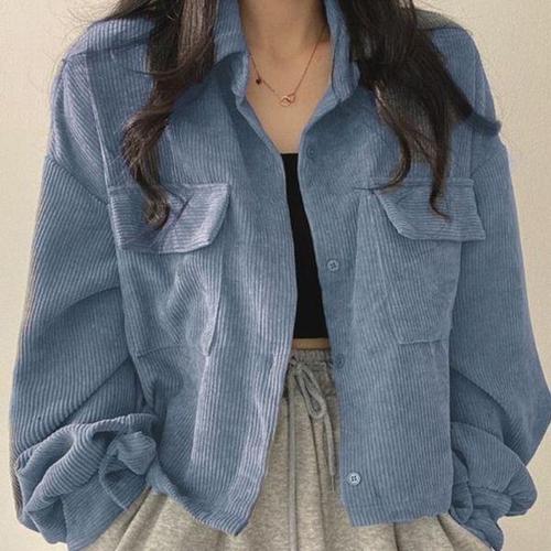 [에이치플러스몰]골덴 스탠다드 카라 재킷 셔츠형 크롭 스타일