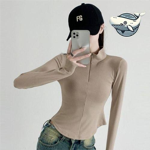 [에이치플러스몰]뒷트임 셔츠 베이직 크롭 카라