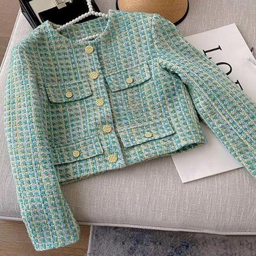 Latium HC06 숏짧은 크롭 주머니 수술 체크 가을 겨울 트위드쟈켓 T2541jk02