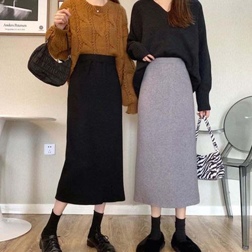 [오너클랜]인기상품 4컬러 트임 골지 하이웨스트 포인트 니트 롱스커트 [WFJ8Q6X_251031]