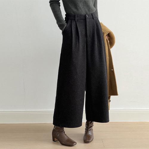 [릴룸]멋스러운 모직 와이드 슬랙스 9부팬츠