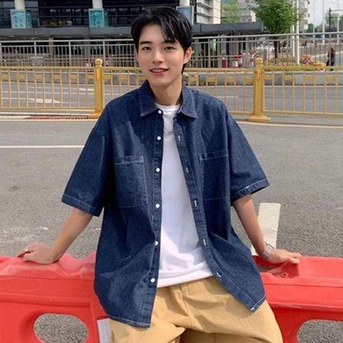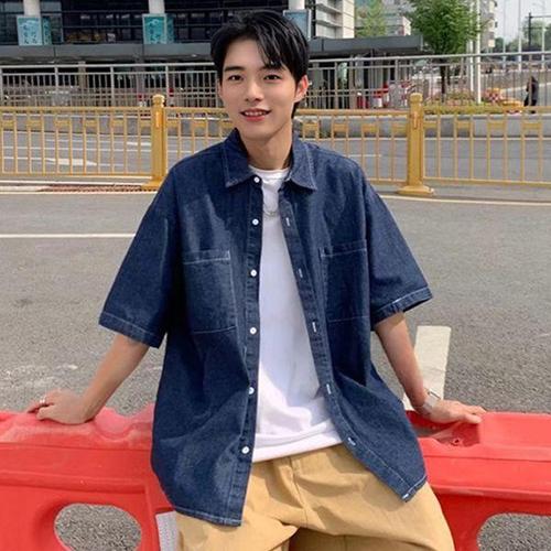[셀러허브_여성트랜드패션]반팔 청남방 워크웨어 오버핏 남자 데님셔츠 5부