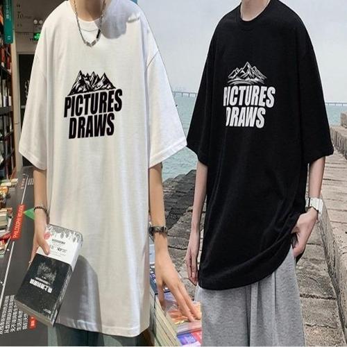 루즈핏 티셔츠 심플 오버핏 반팔 상의 남자 5부 여름 WFLQ8EV