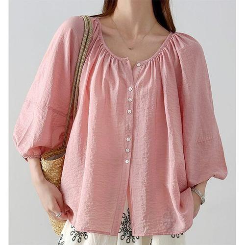 [패션시그널]링클라운드넥 7부퍼프소매 블라우스 AF314E