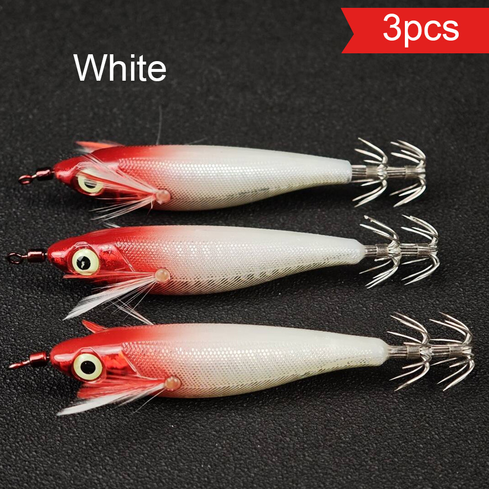 TEMU 3개 AVLCOAKY 야광 루미너스 낚시 미끼 - UV/블랙 활성화 오징어/새우 미끼, 3가지 색상 (빨강/초록/흰색) - 내구성 강한 해수/담수 겸용 인공 먹이 야간 낚시용