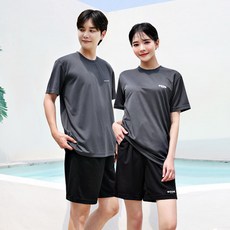 구스 남녀 루즈핏 래쉬가드 반팔티+반바지 상하의 세트 기능성 쿨링 냉감 빅사이즈 GOOSE ITALY, 그레이, M