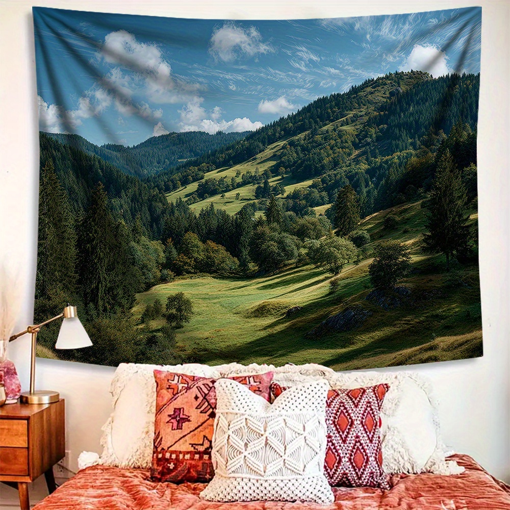 TEMU []1개 복숭아 스킨 벨벳 태피스트리, 초록 언덕 나무 배경, 가볍고 쉽게 걸 수 있으며 세탁기 사용 가능. 거실, 침실, 사무실 분위기 개선에 이상적이며 사계절 내내 활용 가능