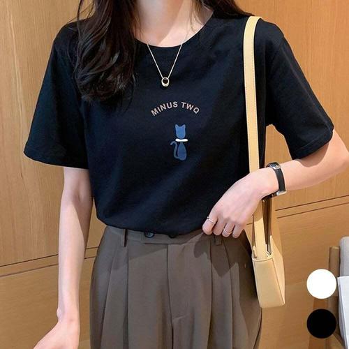 [셀럽하우스]여성 TYGD7200 라운드넥 냥이 반팔 티셔츠