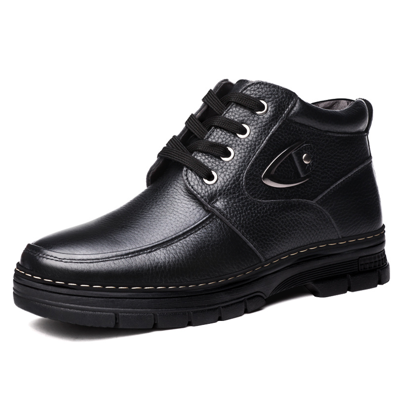 TEMU 남성용 가죽 보온 겨울 신발 부츠 레이스업, 캐주얼 워킹화