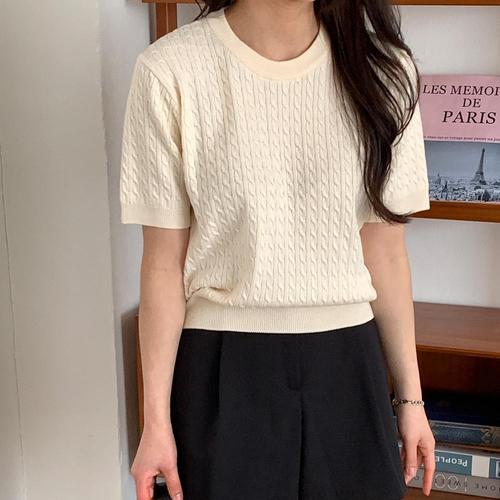 여성 라운드넥 케이블꽈배기 데일리 반팔 니트 티셔츠 21DS-WKN-4382-네이비