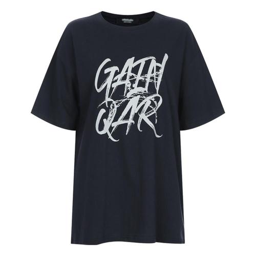 국산 여성 라운드 게인 레터링 루즈핏 면 반팔티셔츠 ODA-WSH-20723-네이비