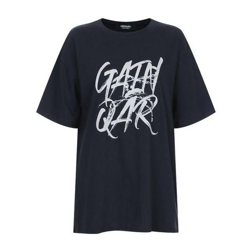 [샵앤]국산 여성 라운드 게인 레터링 루즈핏 면 반팔티 ODA-WSH-20723-네이비