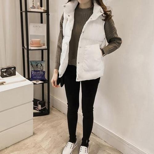 [리빌모아]여자 겨울 베이직 넥커버 패딩 조끼 DMSW-VEP-SCC952-화이트
