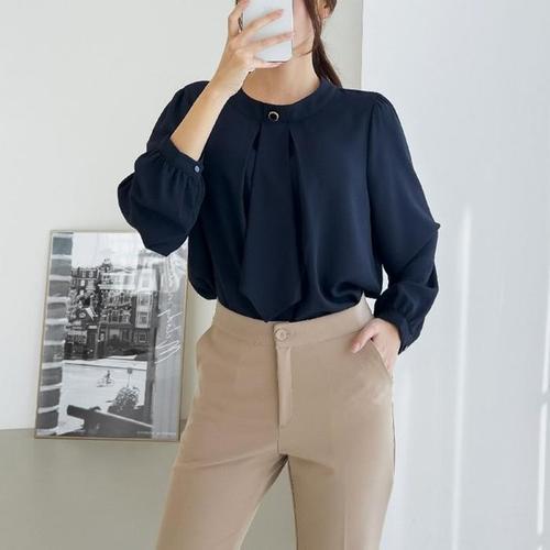 [신상오픈런]여성 오피스 스타일 넥타이 블라우스 차르르 핏 카라 디자인 (33143563)