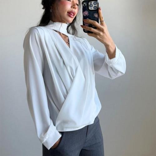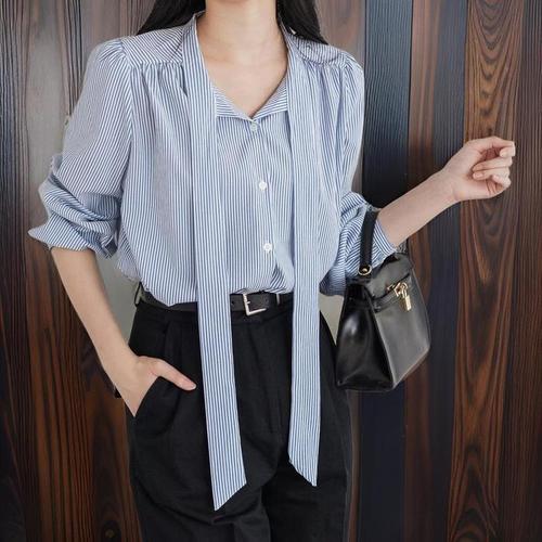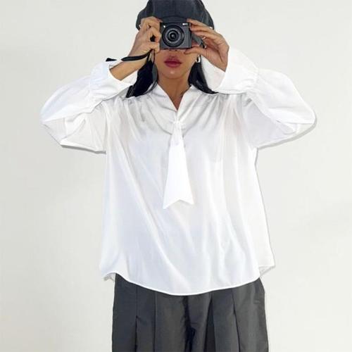 [신상오픈런]넥타이 브이넥 셔링 연주회 비서 봄블라우스 여성셔츠 (29252232)