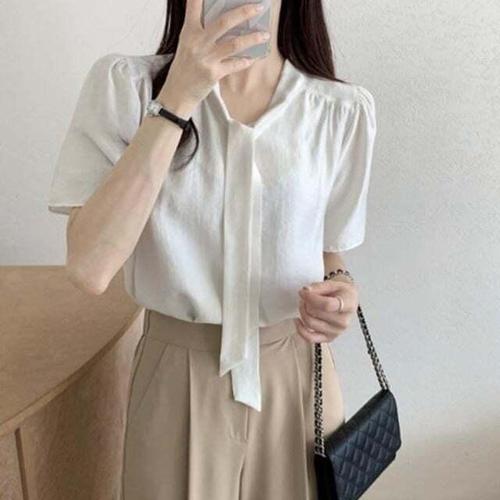 시원하고 우아한 블라우스 여성 넥타이 반팔 WFL9CAT