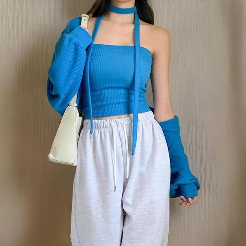 [신상오픈런]넥타이 튜브탑 얇은긴팔 볼레로 숏가디건 상의세트 (30916648)