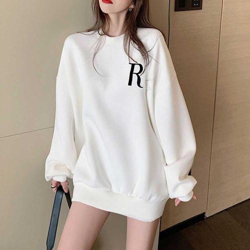 [문에이블]문에이블 가을 겨울 봄 여성 여자 루즈핏 세미크롭 기모 노기모 긴팔 맨투맨 티셔츠