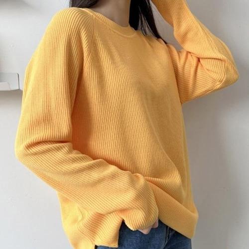 [엄지척]여자 노란색 라운드 니트 골지 봄 가을 환절기_19682081_667501
