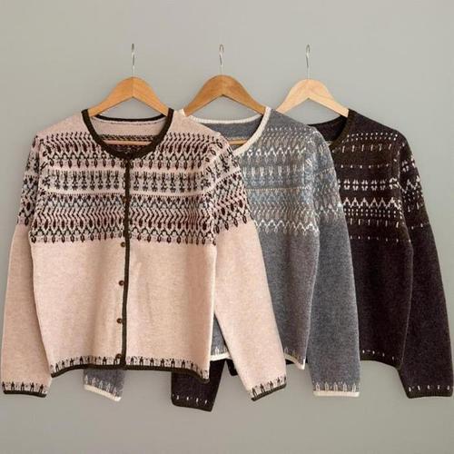 엘케이트 여자 니트가디건 긴팔 라운드넥 노르딕 가디건 LLEET003