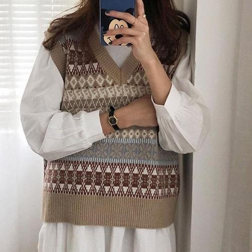 [신상오픈런]노르딕 니트조끼 브이넥 루즈핏 스트라이프 에스닉 (30491501)