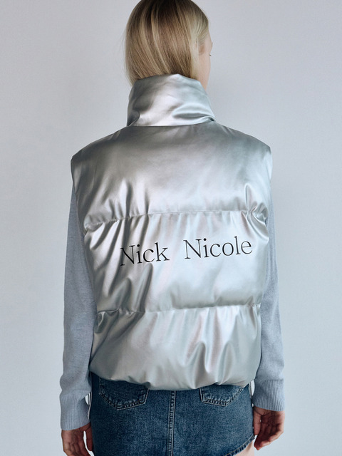 [닉앤니콜] 레더 로고 패딩 베스트_실버
