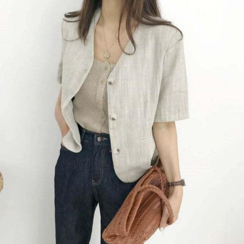 [셀럽하우스]클래식한 OYPT6792 여성 여름 슬림핏 린넨 노카라 반팔 자켓