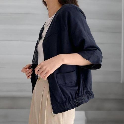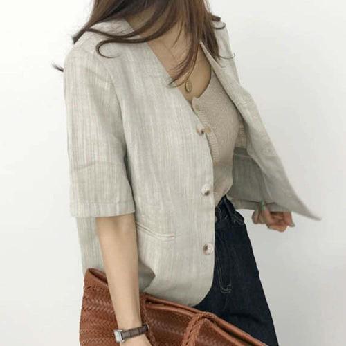 [셀럽하우스]자켓 IXHD3608 여름 브이넥 반팔자켓 노카라 반팔린넨자켓 린넨