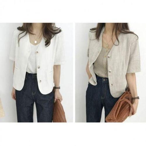 [에이치플러스몰]노카라 반팔 데일리 린넨 심플 클래식 자켓 여성 여름