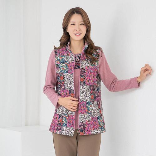 [모슬린]엄마옷 꽃누비티셔츠 조끼 앙상블 세트 510FGH121 마담/중년여성/빅사이즈/50대/60대