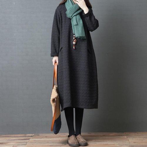 [애비뉴투지]엄마옷 패딩 솜 누빔 라운드 여성 겨울 긴팔 주머니 원피스 K09363 50대 60대