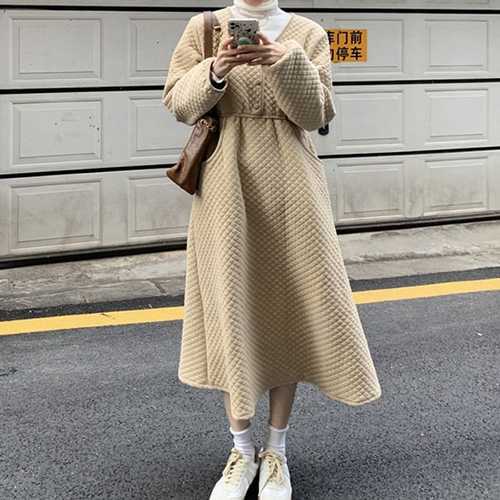 [신상오픈런]벨트 라운드넥 겨울 깔깔이 에이라인 퀼팅원피스 (28832645)