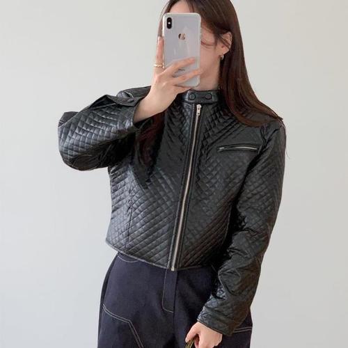 [신상오픈런]여성 다이아몬드 버튼 넥 크롭형 박시 퀼팅 자켓 가을용 (40947293)