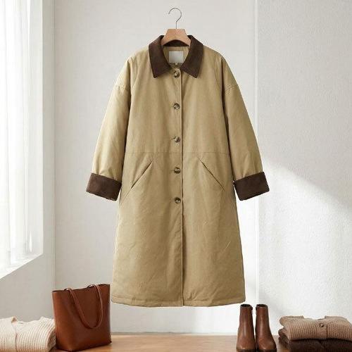 Seofst 여성 겨울 하이넥 롱 누빔 두꺼운 트렌치코트