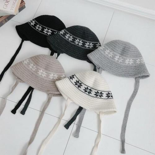[신상오픈런]여성용 겨울 눈꽃 디자인 울 니트 턱끈 모자 (41564072)