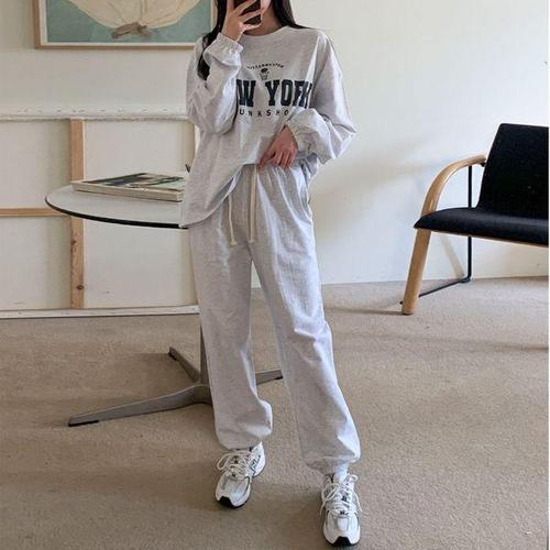 [에이치플러스몰]루즈핏 편안한 뉴욕크 여성 조거 팬츠 티셔츠 세트