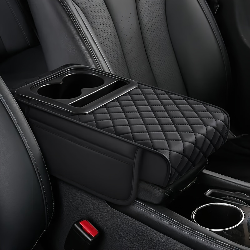 TEMU 럭셔리 PU 가죽 자동차 암레스트 쿠션 (듀얼 컵홀더 및 수납포켓 포함), 비텍스타일, 센터/바닥 콘솔용, 차량 내부 액세서리
